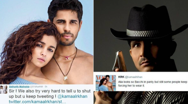 KRK had made a crass comment on Alia Bhatt which enraged Sidharth Malhotra. Jumping to her defense, Sid told KRK to shut up and even had an ugly spat on Twitter. Check it out: