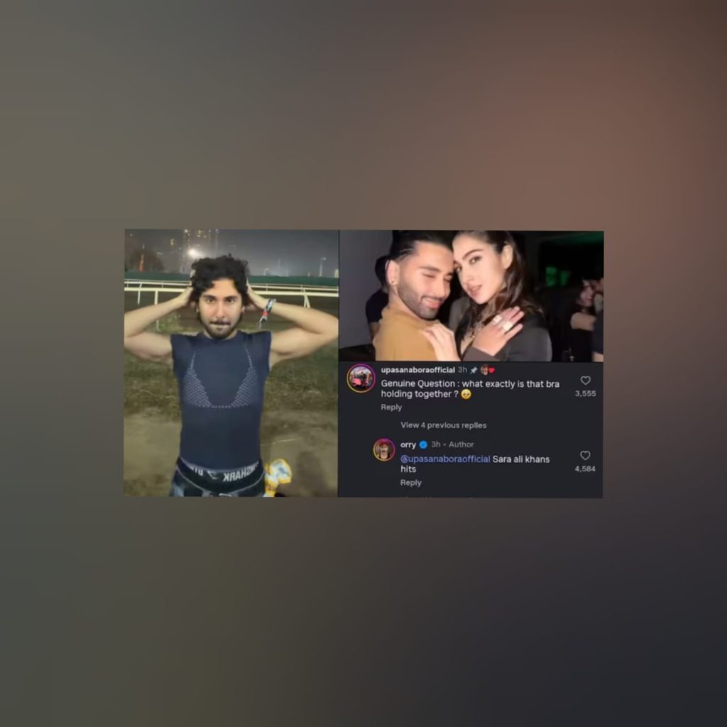 A user commented, “Genuine Question: what exactly is that bra holding together?” Orry not only pinned the comment but replied sharply, “Sara Ali Khan’s hits.” Safe to say, the internet gasped.